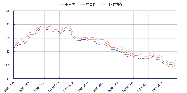 今日泰铢对人民币汇率走势图(2020年7月15日)
