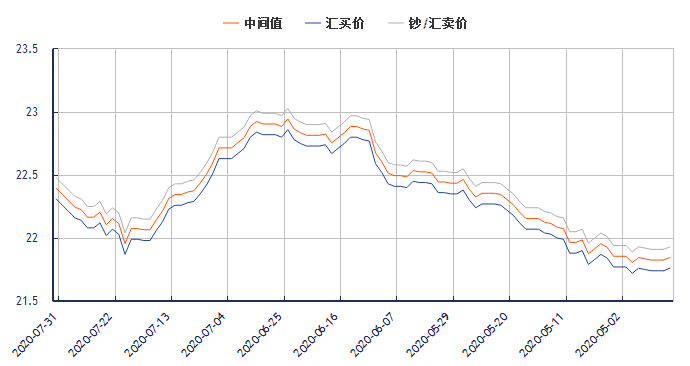 今日泰铢兑换人民币汇率最新中间价(2020年7月31日):