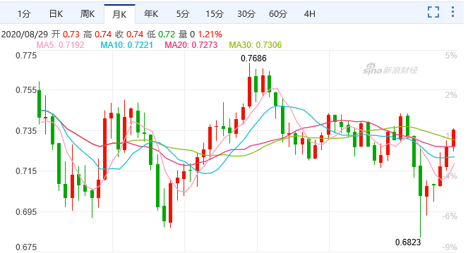 转换数据仅供参考,交易时以银行柜台成交价为准 更新时间:2020-08-30 14:05