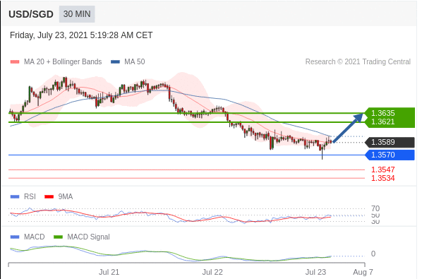 交易策略:有上涨的可能,目标价位定在 1.3635 。