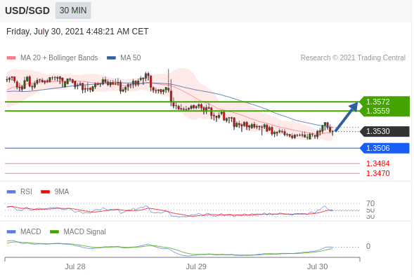 备选策略: 如跌破 1.3506 ,USD/SGD 目标方向定在 1.3484 和 1.3470 。