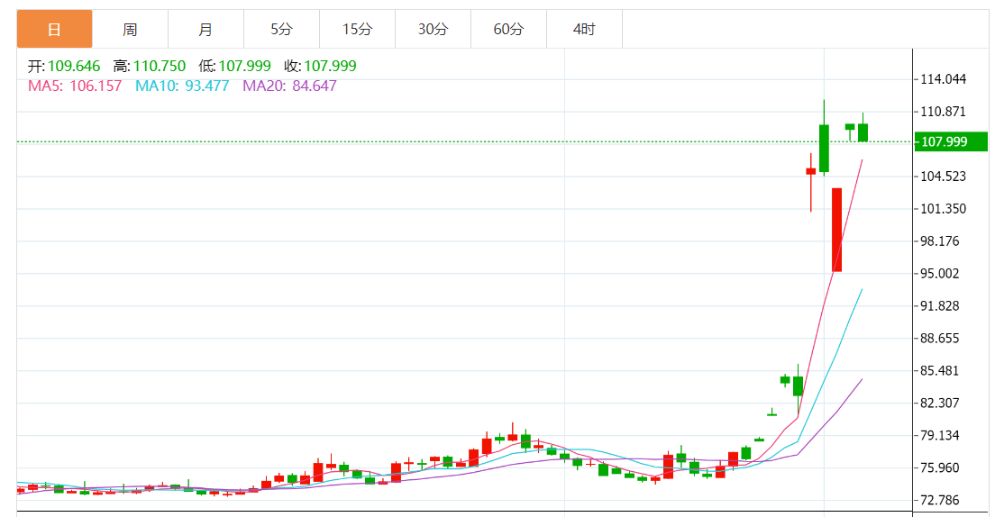 美元兑俄罗斯卢布UD/RU日内大涨10%,现报116.70。