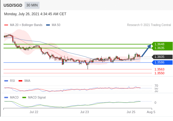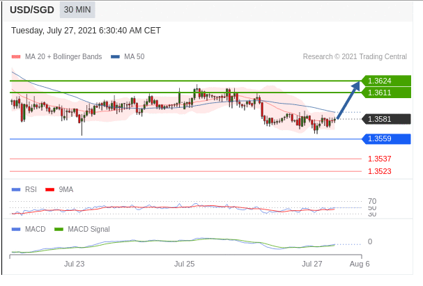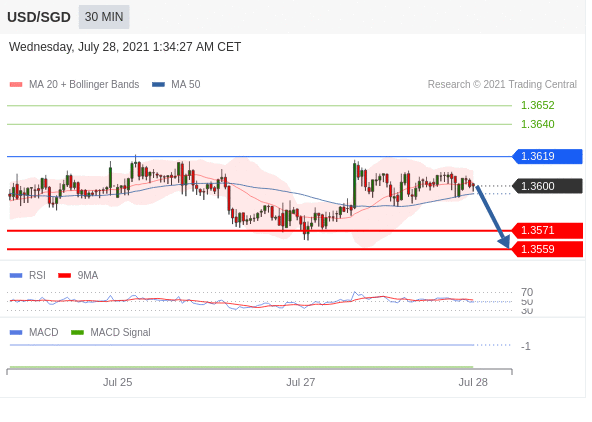看涨,当1.3586为支撑位。 1.3586作为转折点。 交易策略:看涨,当1.3586为支撑位。 备选策略:向下跌破1.3586,将带来继续下跌的趋势,目标位为1.3563然后为1.3550。 技术点评:RI技术指标大于中性区域50。ACD技术指标处在其信号线之上看多。此外,价位高于其20天及50天移动平均线(分别位于1.3602和1.3598)。
