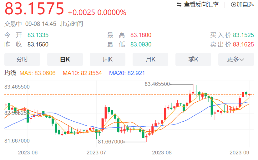 亚汇网提供2023年09月10日05时30分印度卢比/人民币汇率最新报价 货币名称现汇买入价现钞买入价现汇卖出价现钞卖出价中行折算价发布日期发布时间 印度卢比8.31829.388.83892023.09.1005:30:0005:30:00