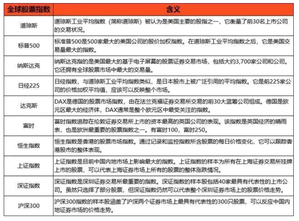如何了解一个国家的股票市场呢?需要了解全球股票指数。