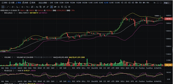 4小时图上来看,价格打破盘整已久的三角区间,最高测试布林上轨附近,但并未有更大的涨幅出现。走势上而言,价格目前保持震荡,日内或许有轻微反弹的动能,重点上方关注布林上轨带来的压制情况,破位则可能会加速本次上行力度。如未破位,则下看15000支撑点位附近。【11.12操作思路】:BTC:早盘若反弹至15700附近,空单介入为主,止损120-150刀。看回落15450附近。ETH:460-462分批做空,止盈目标下看456-454,破位再次下看452附近。关注子禹论币(zylb18),了解最新行情。以上分析内容仅代表个人观点,并且点位具有延时性,不构成实仓操作,盈亏自负,提醒大家投资有风险,入市需谨慎。