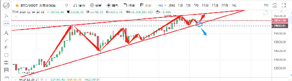 从四小时图看:昨日凌晨币价一波下跌至低点15950一线后迅速反弹,虚破16000一线对于许多投资者来说是虚惊一场,但也给市场敲了一个警钟,要谨防空头的反扑。四小时图中5日均线开始走平,附图中MACD双线开始粘合有形成死叉的迹象。绿色动能柱持续缩量,KDJ三线死叉向下发散。从指标上看,多头多次多次上攻受阻,币价有再次回调的风险。日内关注趋势线的支撑效果,不破将再次向上发起上攻。