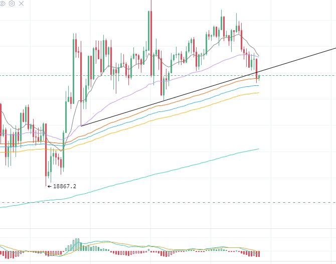 昨日行情维持缓涨为主,最高触及19610位置,随后突然性下跌,目前行情维持震荡。从日线来看,行情已经收破19161的位置,站稳其上方,今日需要再次试探附近企稳就可以再次往上进攻,关键在于判断是否回测企稳。而4小时走势和日线是有矛盾存在的,从图上来看明显发现行情是在受压之后选择再次小幅回落,从走势来说,这里有二探结束,往下运行的意思,包括楔形整理,上涨楔形正常条件是看跌的形态。所以这里需要关键楔形下方趋势的破位情况。判断破位情况可以选择看1小时级别的收线情况。总体来说目前行情在纠结中,市场分歧在于目前是直接突破2W还是进行深度回调之后再上,今天建议观望为主,破位顺势而为即可。