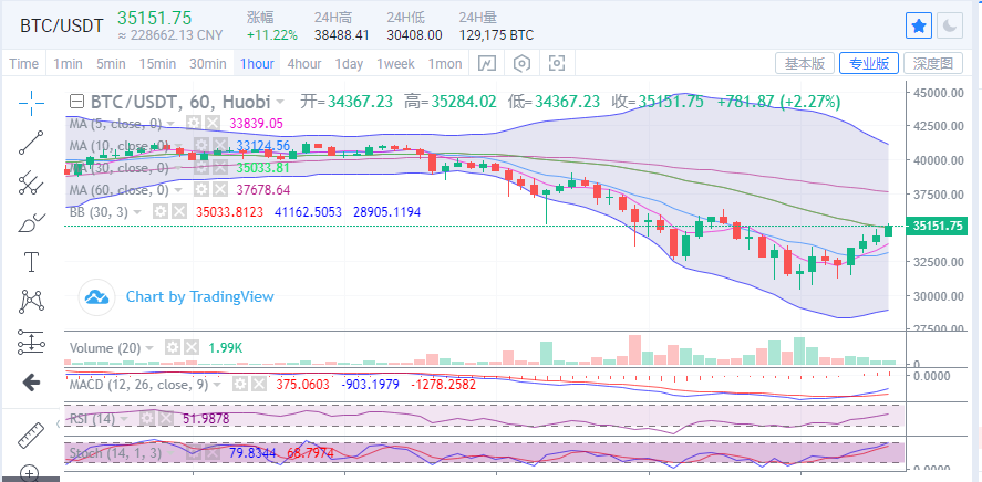 比特币昨日行情迎来洗盘,日内跌幅近8700点,走势一路向下逼近31000一线。日内凌晨延续下行,低位进一步下探至30400位置附近反弹,行情迎来反转,多头情绪开始回暖,目前走势重回34000区域。