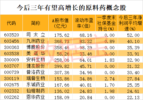 受上述消息刺激,近期原料药板块持续受到资金关注。5月31日,A股原料药概念股美诺华、昂利康、哈三联等3股涨停,原料药巨头亿帆医药、博腾股份、华海药业大涨超5%。截至5月31日,A股原料药概念股市值合计9356亿元。其中哈三联、瑞普生物、九洲药业、博腾股份、安科生物等5股近一个月内创下历史高点。
