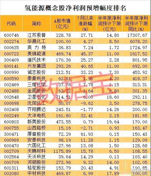统计显示,目前有超百家公司布局了氢能源产业,截至8月6日收盘,氢能源概念股A股市值合计2.34万亿元,7月以来概念股平均涨幅达到13.75%,超过同期沪指17个百分点。东华科技、三孚股份、*ST猛狮、厚普股份、深圳燃气等累计涨幅排在前五位。