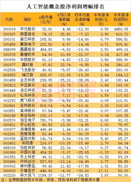 统计显示,人工智能概念股目前整体都处于滞涨状态。与年内高点相比,*ST数知、*ST赛为、博睿数据、寒武纪-U、神思电子等概念股回撤幅度超过40%。8月以来,仅有当虹科技、赢时胜、同花顺、慈星股份、雄帝科技等累计涨幅超过20%。
