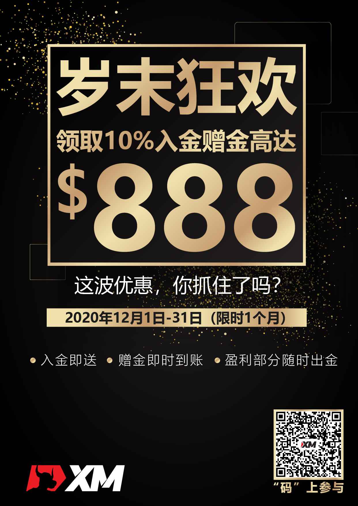 X2020最后一次优惠季,特推出限时1个月的10%入金赠金高达$888的优惠活动,仅剩2周!优惠期间,在X入金即可获得此项优惠赠金,每人仅限参与一次,2020最后一次免费领取赠金,机不可失失不再来! 何时参与? 2020年12月1日-12月31日(限时1个月) 赠金是什么? ·可交易 ·扛亏损 ·盈