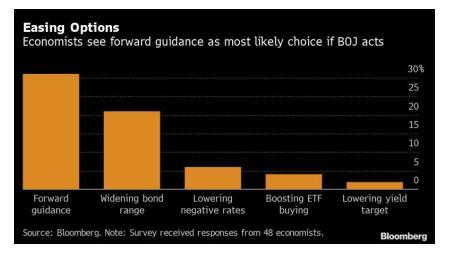 债券交易员将密切关注日本央行是否会暗示不担心收益率下降。扩大交易区间是日本央行的另一个选择。黑田东彦对超长期债券收益率的评论也将引起密切关注。超长期债券收益率一段时间以来一直处于较低水平,因此人们认为越来越有需要加以调整。