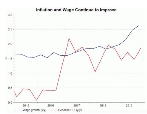 自上次会议以来,新西兰的经济有所改善。房地产市场正蓄势待发。QV的房价指数显示,1月份住宅平均房价同比上涨4.4%。2019年第四季度,新西兰的失业率下降了0.2个百分点至4%,低于市场预期。