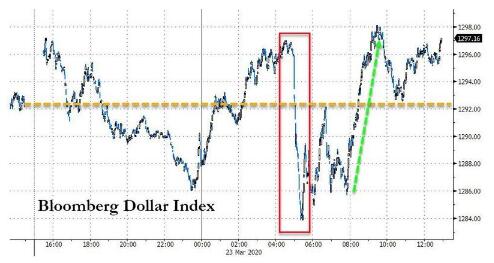 然而,尽管美联储决定史无前例地无限量购买国债和MBS,美股本周一仍未能扭转跌势,标普500指数和道指双双创三年新低。而在汇市方面,这些措施宣布后,美元虽一度大幅下跌,但此后迅速回升,彭博美元即期指数再创新高连续第11天上涨。