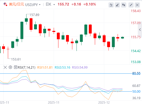 加息可能会走强日元兑美元(USD)。该货币对的第一个上行障碍位于155.95-156.00区间,代表12月18日的高点及心理线。下一个阻力位出现在12月9日的高点156.96,随后攀升至11月21日的高点157.60。