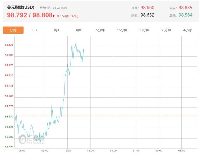 周五(8月22日)亚洲时段,美元指数企稳高位98.60上方,周四,美元指数上涨0.38%,收报98.60,盘中最高曾触及98.67,为8月6日以来新高。这种美元的王者归来,不仅源于美国经济数据的支撑,还得益于投资者对美联储政策预期的调整。 美联储最新动态一览 目前,市场对9月降息的概率已从一周前的92%降至74%