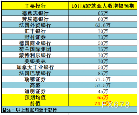北京时间周三(11月4日)21:15将公布美国10月ADP就业人数,该数据素有“小非农”之称,包括德意志银行在内的14家大型投行发表了10月ADP就业人数增幅的前瞻,具体如下: