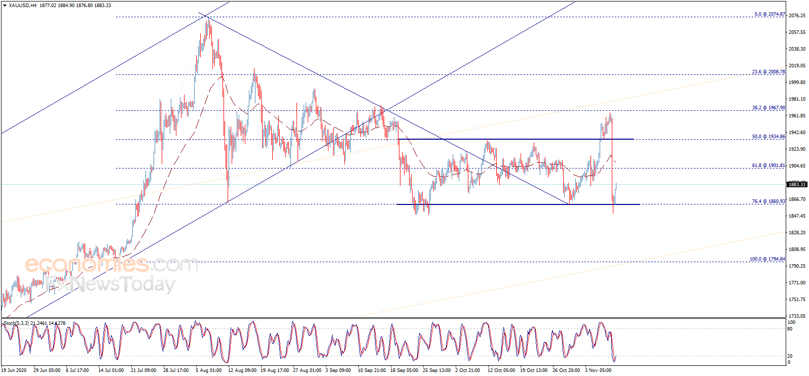根据Economies.com,只要守住1860.90美元/盎司关键支撑,金价后市可能仍有大幅反弹空间。