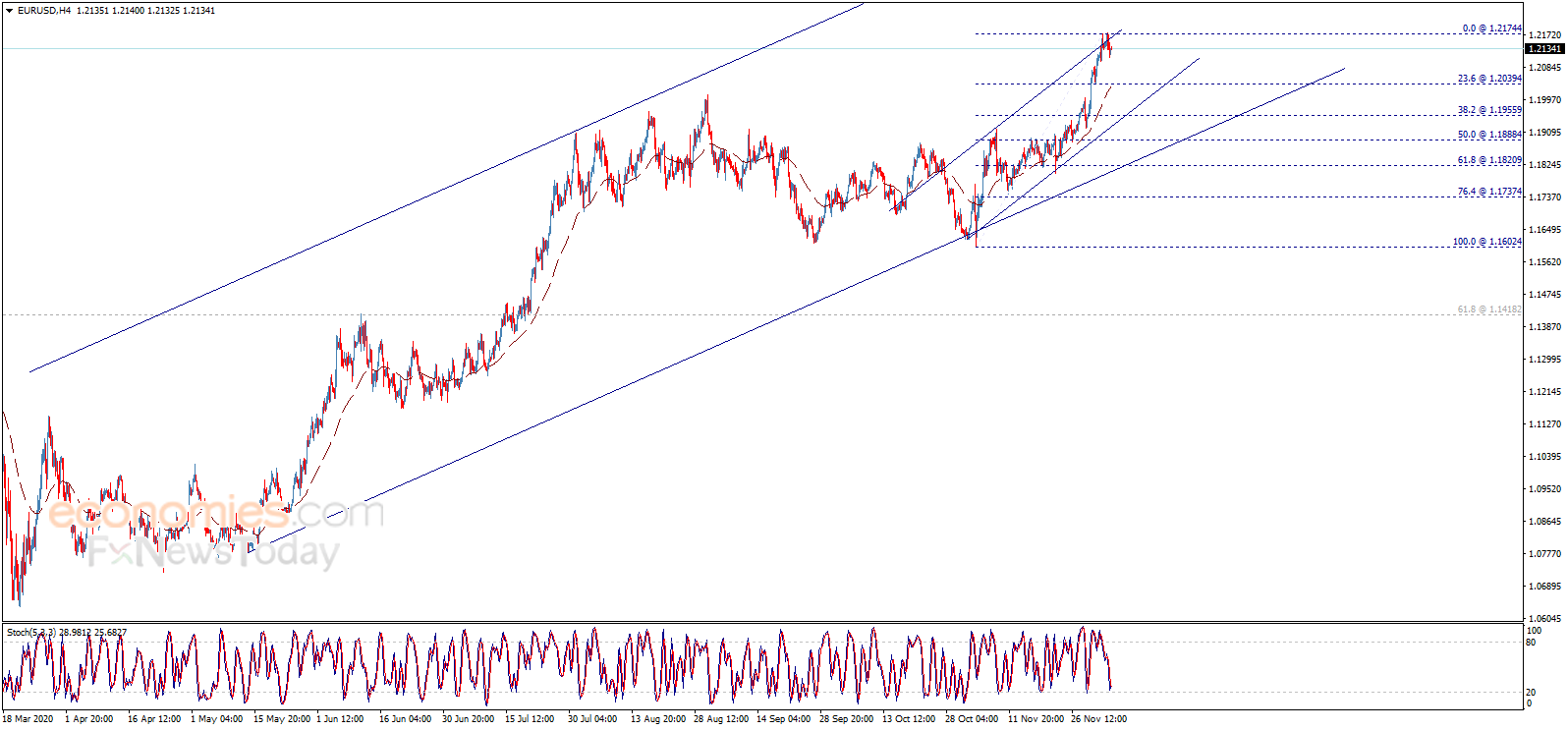 欧元/美元在1.2175面临强劲阻力,该汇价显现一些短暂的看空倾向。值得注意的是,随机指标摆脱其负面动能,并触及超卖区域。与此同时,从4小时图来看,EMA 50指标继续对汇价构成支撑。