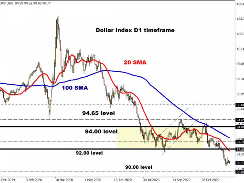 观察美元指数,空头仍在掌控之中,在91.00以下持续走弱,将打开通往90.00的通道。