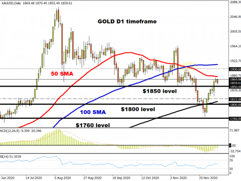 至于黄金,1850美元的阻力位可能会转变成动态支撑,这可能敞开测试1900美元的大门。若价格跌破1850美元,则金价或进一步下滑至1815美元。