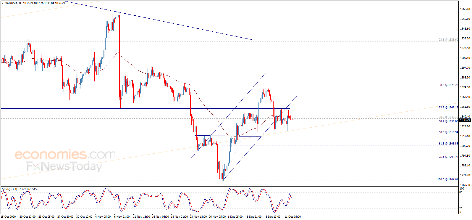周一(12月14日)亚市尾盘,现货黄金温和下跌,金价现报1834美元/盎司附近。知名财经资讯网站Economies.com周一撰文,对日内欧元/美元、英镑/美元、美元/日元和黄金走势进行前瞻分析。
