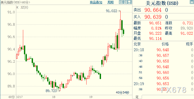 美元指数自上周触及的2018年4月中旬以来新低89.723大幅反弹,创六个交易日新高,升破91关口,导致金价一度跌近1.4%。市场负面人气令美国国会领袖周末达成的新冠救助方案未能在市场掀起大的波澜。投资者大幅调降对不断扩大的疫苗投放将推动全球经济增长的乐观预期。