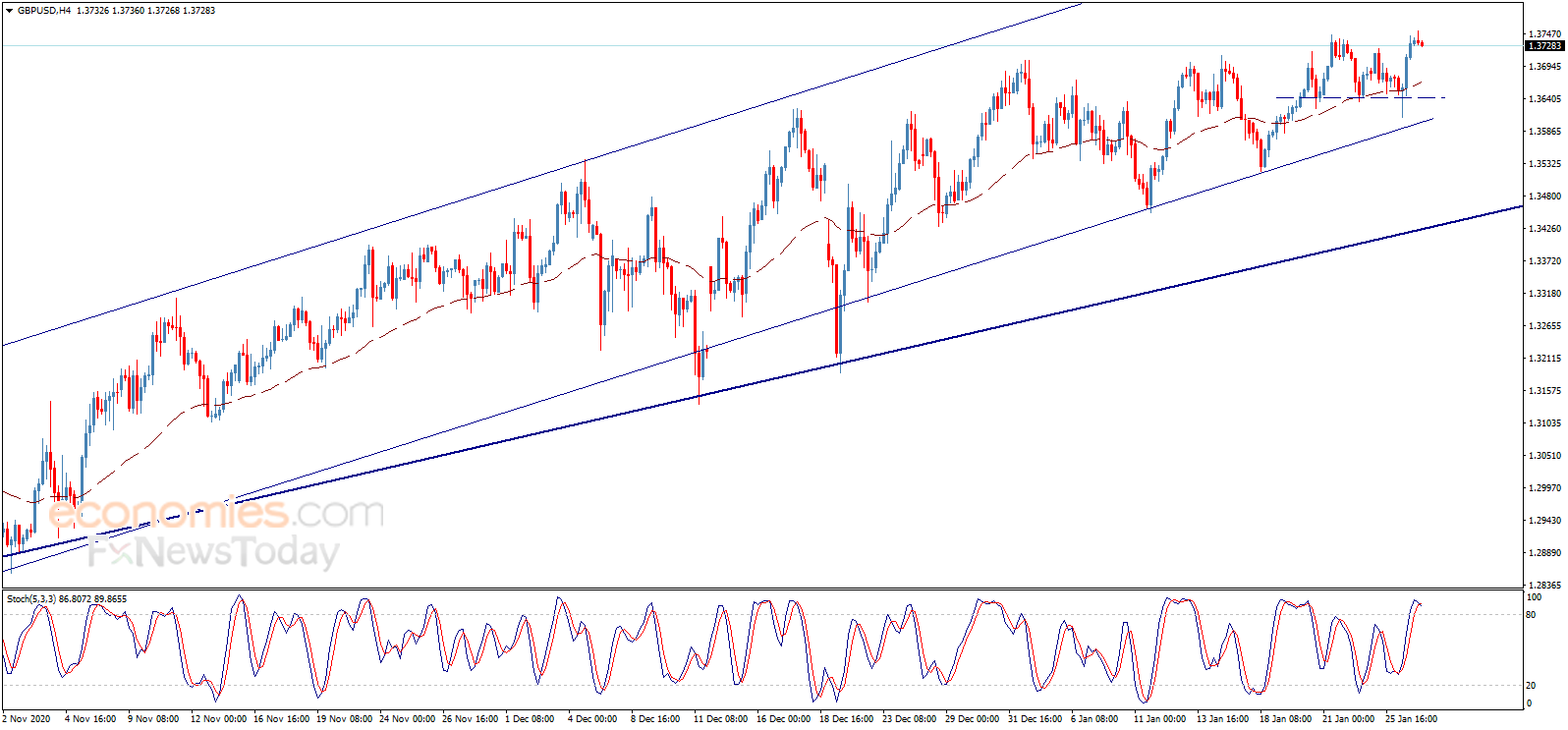因此,预测英镑/美元在未来几个交易日处于看涨趋势。从4小时图来看,EMA 50指标对汇价构成支撑。需要指出的是,英镑/美元需要维持在1.3645上方以继续看涨走势。