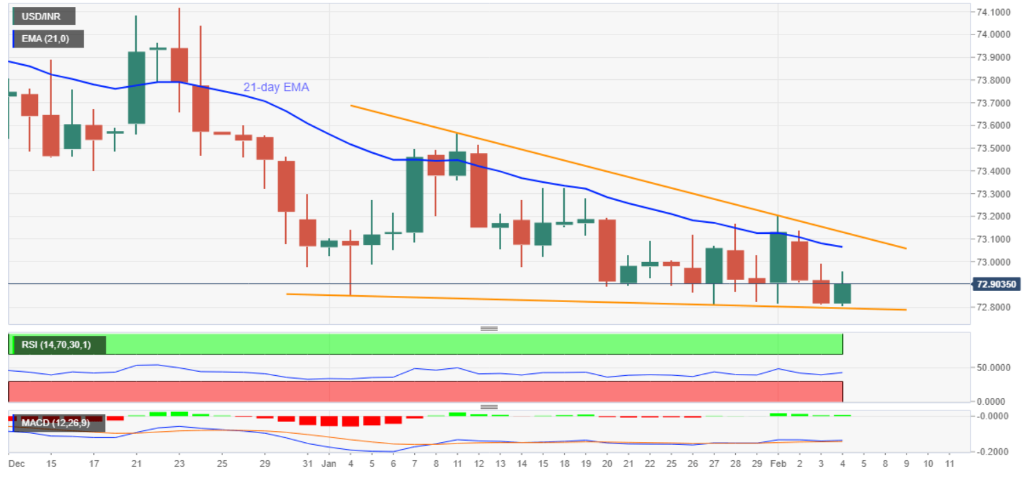 周四欧盘,美元兑印度卢比结束两连跌,上涨0.12%接近72.90。汇价自早前录得的五个月新低U型反转,同时仍位于看涨形态内。总体上,空头在72.70附近呈疲态,因此确认看涨形态增加多头的强度。料进一步反弹。