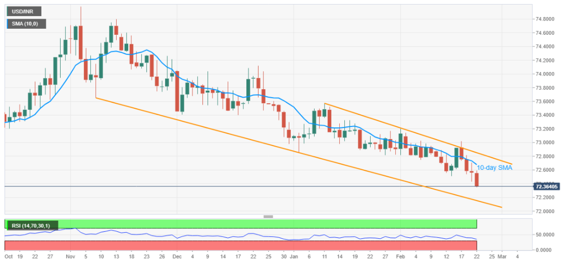 周一,欧市盘前,美元兑印度卢比跌至72.37,触及2020年3月以来的最低水平。汇价连续第四日下跌。