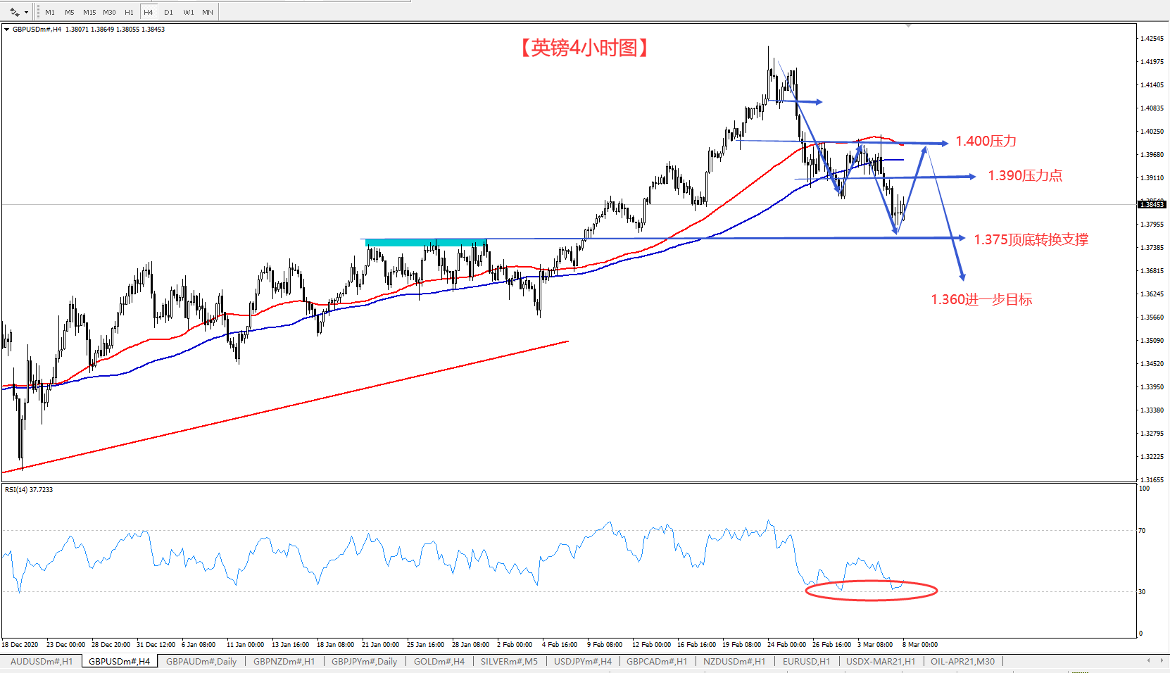本周阶段,重中之重,聚焦美债收益率走势!在1.9万亿刺激计划的进一步拓展下,经济复苏的预期要更加稳定,此外,欧央行和加拿大央行也将迎来最新利率决议,同样会牵制美元的运行,继而连带G10货币也将更加不稳定。相应的,我们所参与的英镑更是要谨慎操作!
