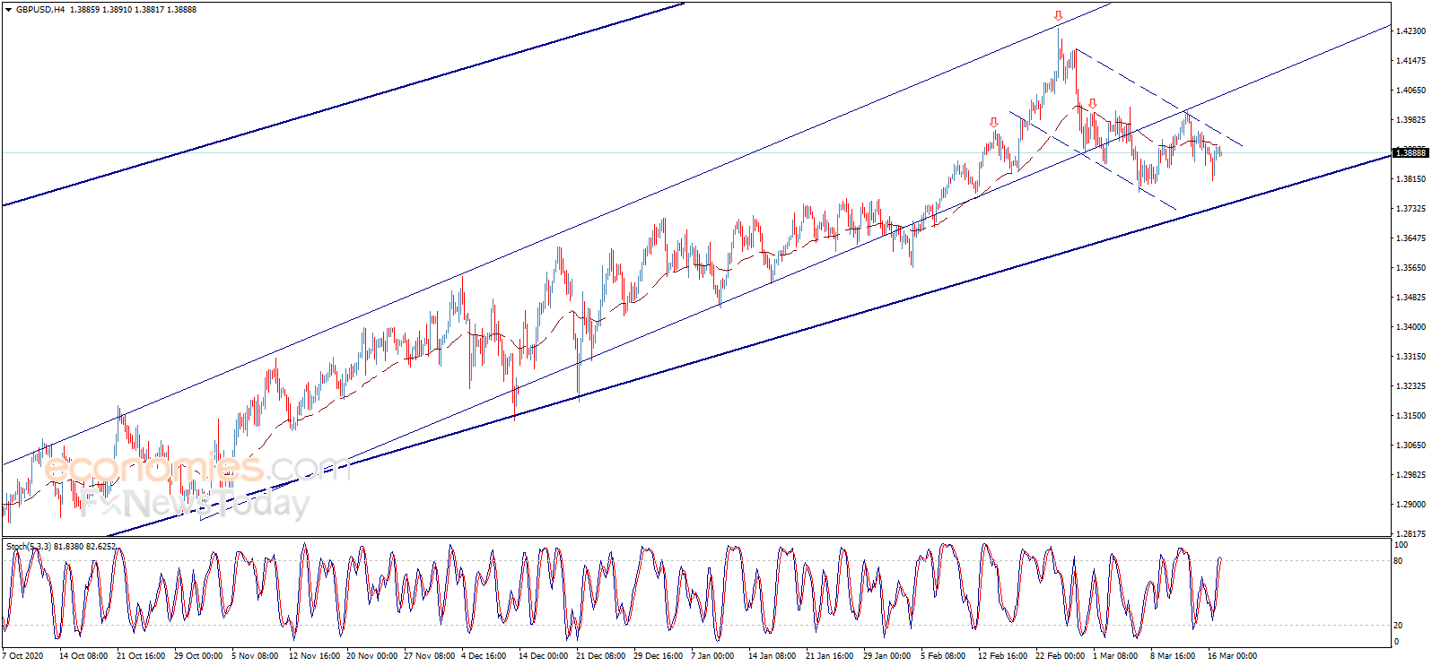 英镑/美元你反弹并测试EMA 50指标,这一水平形成坚固阻力,此外,随机指标触及超买区域,等待这些因素推动英镑/美元重回下跌走势。如图所示,英镑/美元位于看空通道内,我们的下一主要目标位于1.3740。