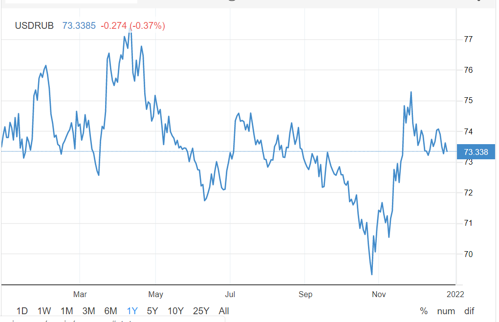 10月26日,由于西方国家担心俄罗斯可能对乌克兰进行军事干预以及油价下跌,卢布汇率达到了16个月以来的最高点69.3,但现在仍比这个高点低了5.5%。在货币政策方面,俄罗斯官员在12月会议期间将利率上调了100个基点,以遏制通胀,并为进一步加息留下了余地。