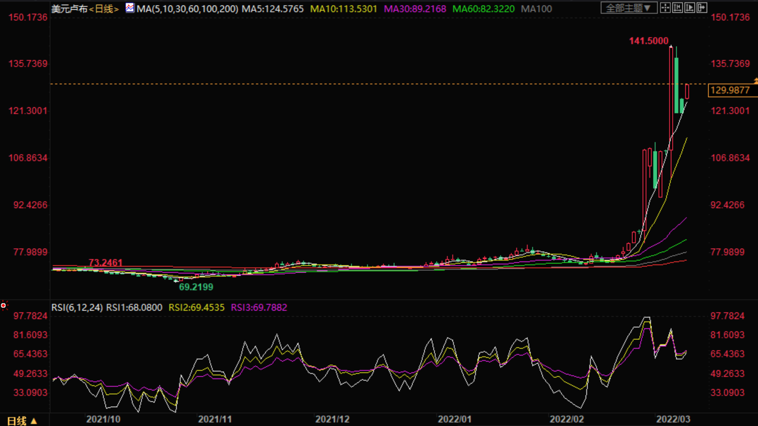 由于世界主要产油国被孤立,导致供求机制发生巨大偏差,油价已攀升至125美元以上。