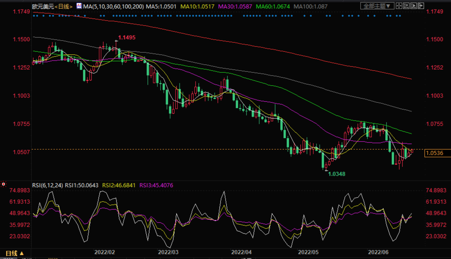欧元兑美元仍然偏向下行。尽管欧元在过去三天在1.0472-1.0545区间内盘整,但欧洲央行和美联储之间的利差对美元有利。