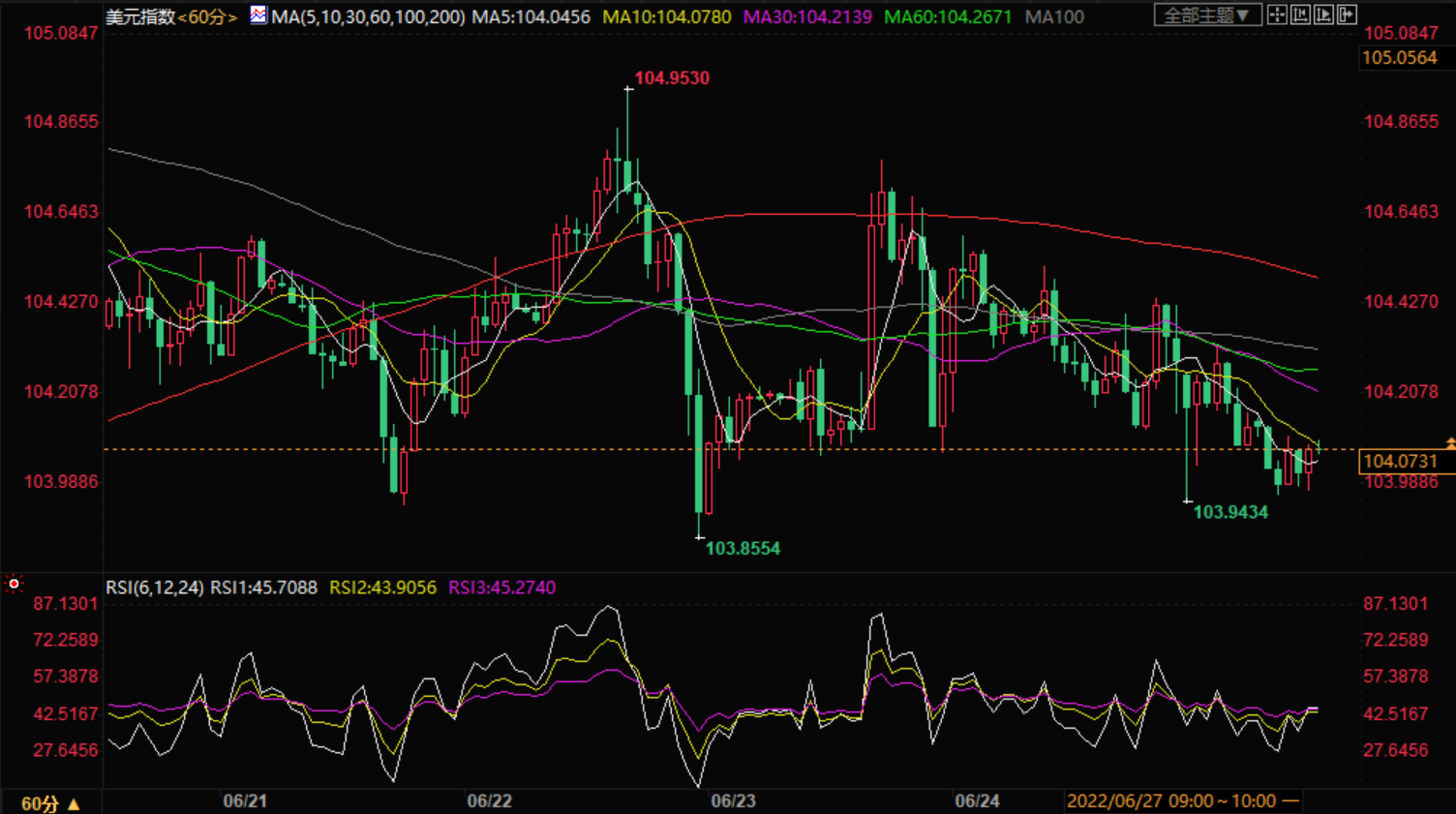 美元在上周五下跌并录得本月首周下跌之后,正在延续下行趋势。石油和大宗商品价格的下跌削弱了美元的避险吸引力。我们看到美元指数价格走势如下: