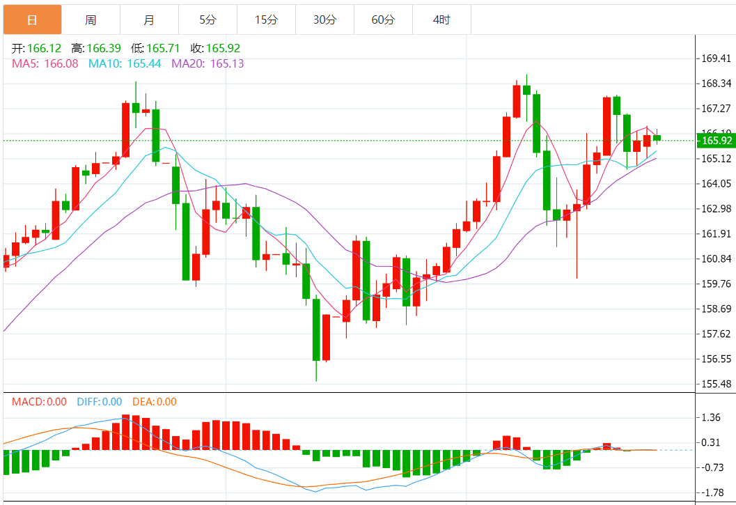 技术上,在MACD 信号疲软的情况下,英镑/日元验证前日汇价上行突破一周阻力。因此,英镑/日元目标是 6 月9 日以来下行倾向趋势阻力位 167.50 附近。