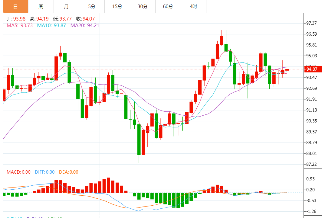 若澳元/日元突破94.50 上方维持走强,不能排除澳元/日元将接近上周高点接近95.35,然后上涨至月线高点96.90 的可能。
