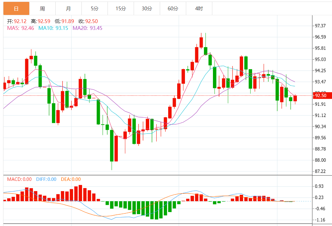 但是,卖方需要验证 1 月下旬以来的的上述支撑线,截至发稿时该水平处在 91.90 附近。之后,5 月中旬的震荡高点91.20 附近可能会考验空头,随后空头将测试5 月低点87.30。