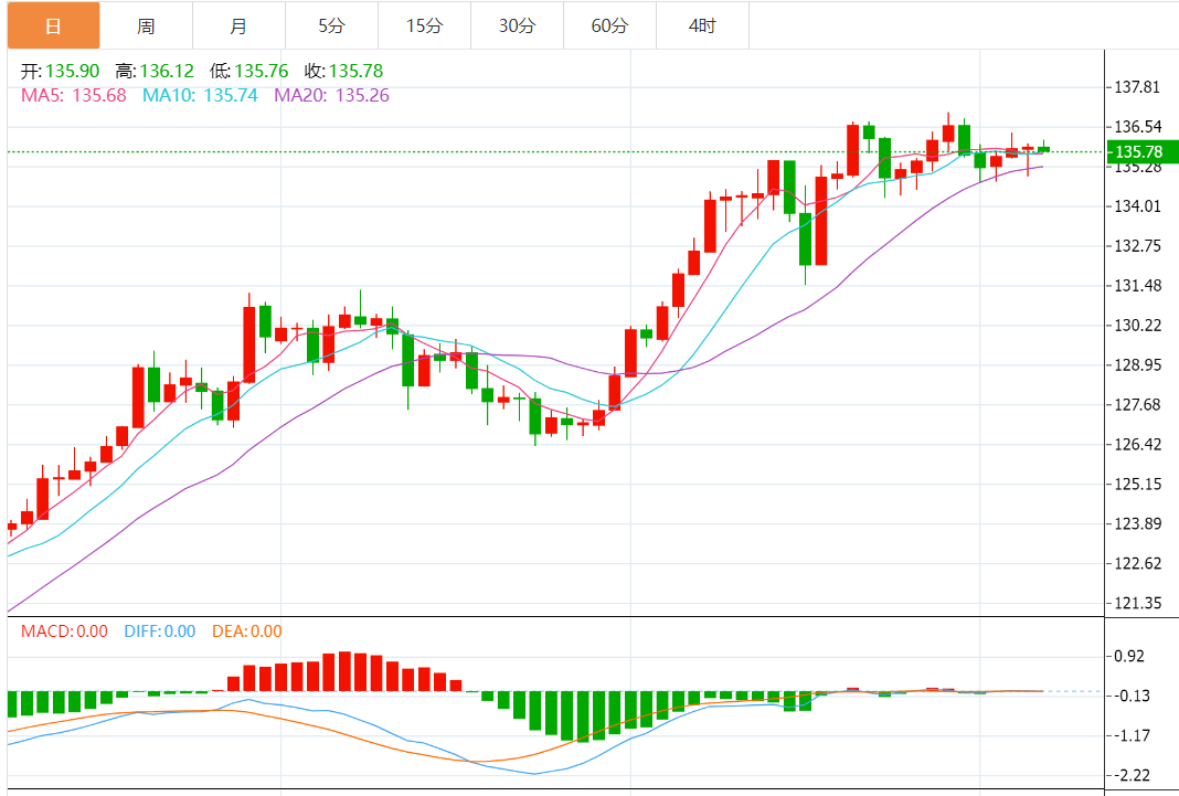 阻力位: 136.00 136.35 136.80