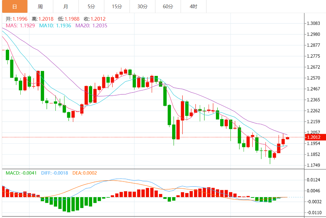 技术上,日图进一步上行测试下行的20日均线,随机指标仍倾向走高。4小时图先抑后扬仍在测试1.2040附近水平。小时图一度在1.2030附近受阻回落在1.1925一线企稳重新测试前期高点附近水平有再度遇阻迹象。