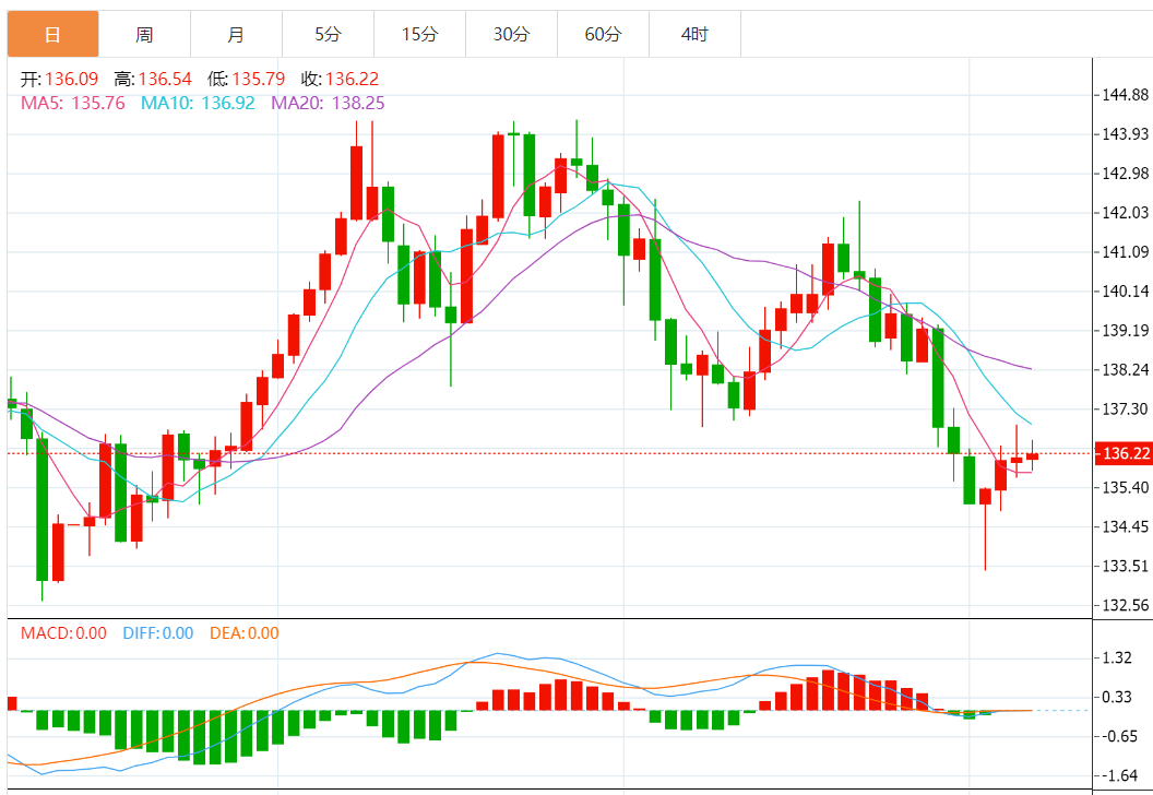 技术上,欧元兑日元守住额外支撑位 133.60 以保持继续看涨反弹的机会,注意恢复看涨攻击并逼近第一关口 136.70。
