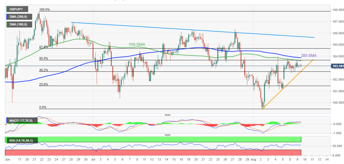 上行方面,100-SM??A和6-8 月跌势的50%斐波位汇合处163.60附近成为上行阻力。