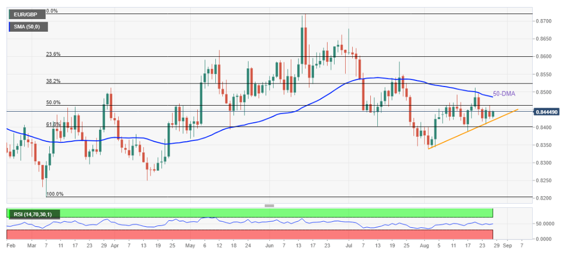 另一方面, 上述支撑线接近0.8420,限制汇价立即下行。之后,接近0.8400的61.8%斐波回档位和月度低点0.8340可能会受到欧元兑英镑空头的关注。