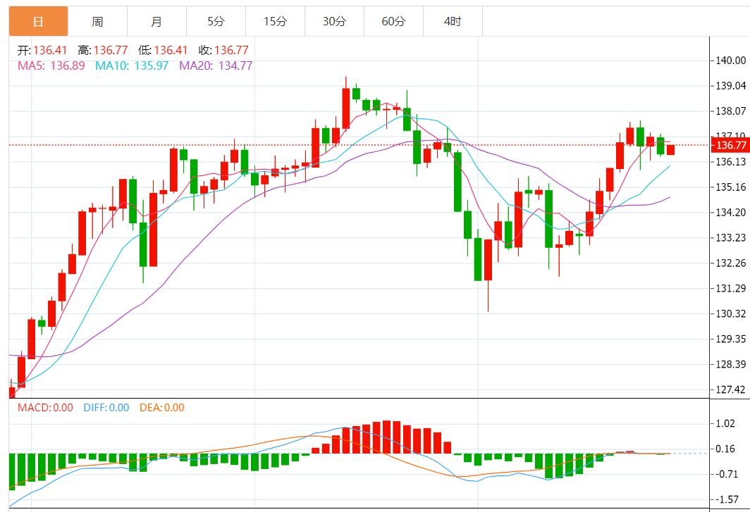 技术上,日图围绕137拉锯,随机指标倾向进一步走低,但维持在135.80上方仍倾向继续走高。4小时图波幅有限,短期均线走平并压制汇价。小时图维持在MA100下方整理,维持在该线下方看空。