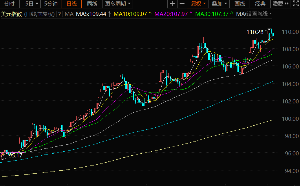 技术上,尽管美元指数在触及110.00上方的新高后受到一些压力,但仍保持了看涨的前景。该指数上一次触及110.00上方的新高是在近20年前。