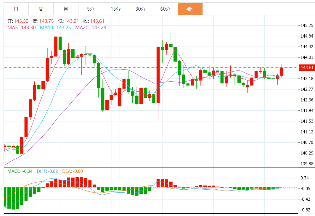 ¼¼ÊõÉÏ£¬ÈÕͼÔÚMA5ÓëMA10½ººÏ´¦Õ·ùÕûÀí£¬Ëæ»úÖ¸±êÈÔÇãÏòÏÂÐС£4Сʱͼ²¨¶¯ÓÐÏÞ£¬È±·¦·½Ïò¡£Ð¡Ê±Í¼Î§ÈÆMA200¾À½á£¬¶ÌÏßÇø¼äλÓÚ142.50-143.80¡£