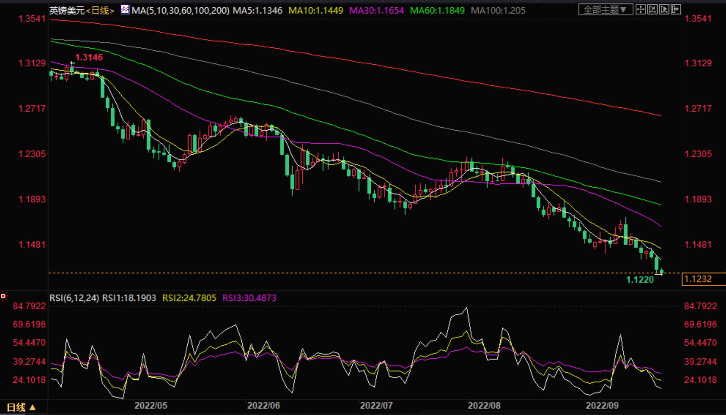 在美联储宣布加息75个基点后,英镑/美元跌至37年来的新低。美联储的这一举措是此类举措的第三次,因为它希望缓和通胀担忧,即便是要付出“长期低于趋势增长水平”和劳动力市场走软的代价。美联储主席鲍威尔也暗示,抑制通胀的道路并非没有痛苦。尽管美联储符合市场预期,但围绕加息的经济担忧和11月再次加息0.75%的预期使美元处于领先地位,尽管在宣布加息前后出现了严重波动。